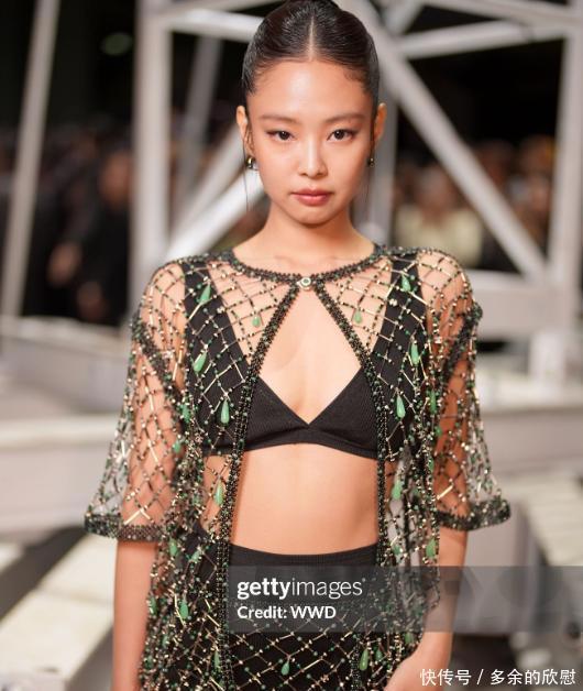 不光如此,参加时尚活动的人气最高的还是那些国内外的女明星,一位比一位打扮得精雕细琢、夺人眼球,拼尽全力想吸引众人目光。不知道哪位能真正脱颖而出、艳压群芳呢?01 Jennie作为香奈儿的全球大使,Jennie这次也出席了品牌的秀场盛事,造型相当大胆,直接穿上了透视装,惹人注目。这套用珠子串成的镂空套装,除了装饰作用外,基本遮不住啥,若不懂的人还以为是奶奶家用的旧式门帘呢。