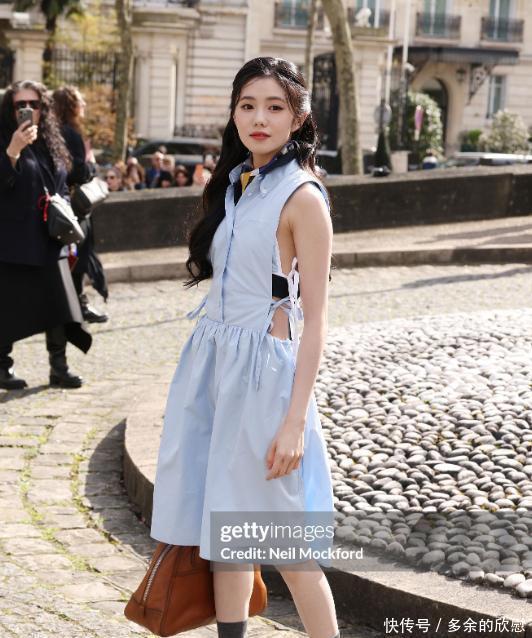 看起来韩国女明星的长相也没那么厉害,还是比不上咱们中国女明星的面孔有看头。04 刘浩存身为Miu Miu的品牌大使,刘浩存这次也赶赴巴黎时装周了。在秀场上,她穿着一袭淡蓝色的挖腰裙,正面看起来满满的少女感,那股扑面而来的清新气息,简直让人心情都变好了,大家都被她的气质迷住了。